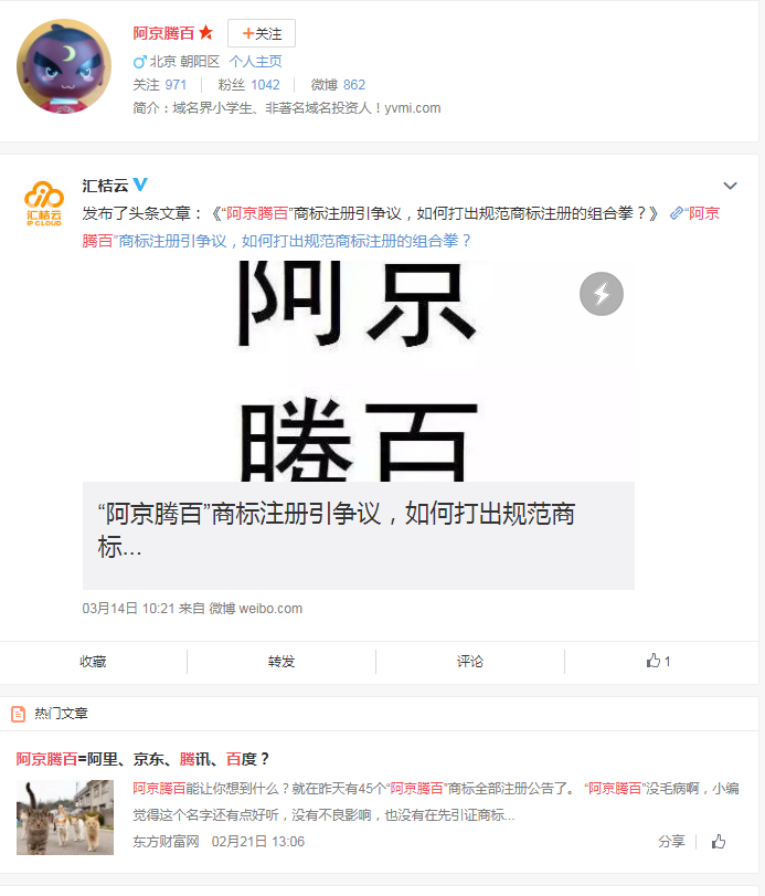 “阿京腾百”商标腾空出世