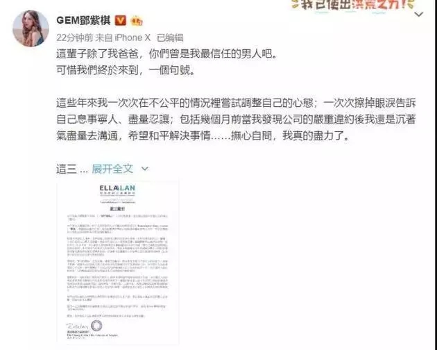 3月7日,邓紫棋在微博发布了一篇长文宣布解约,并附上她委任的律师行的一封声明。